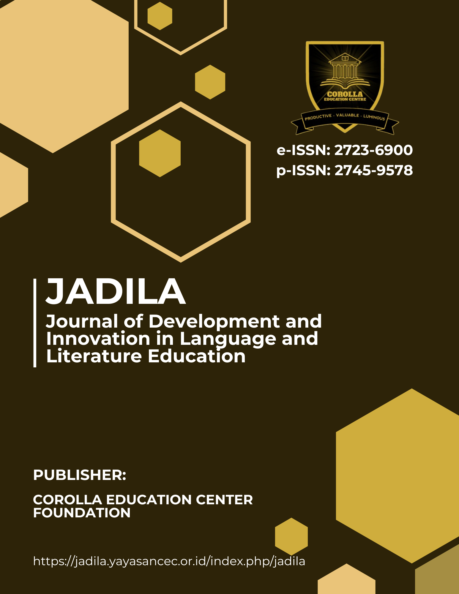 Jadila: Journal of Development and Innovation in Language and Literature Education is an open access journal which published four times a year in February, May, August, and November. with e-ISSN: 2723-6900 and p-ISSN: 2745-9578. This journal is published by Corolla Education Center Foundation. We accept mainly research-based articles related to Language and Literature Education. The articles must be written in English. Jadila is nationally accredited (SINTA 5) by the Indonesian Ministry of Education, Culture and Research and Technology with the Decree Number 230/E/KPT/2022 which is valid for five years since Volume 1 Issue 1 (2020) to Volume 5 Issue 4 (2024).